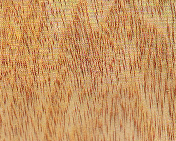 心边材区别略明显。心材红褐色至浅褐色,有时带浅黄色调。边材色稍浅。生长轮略明显。